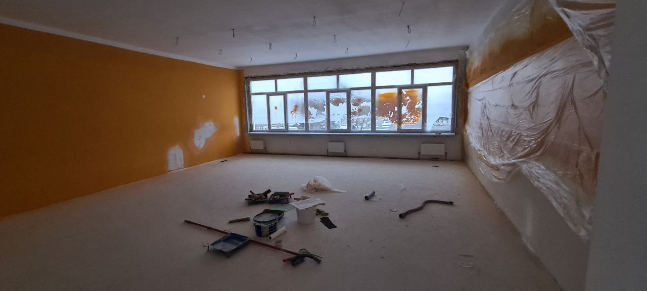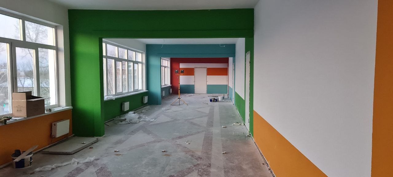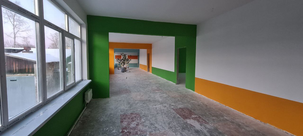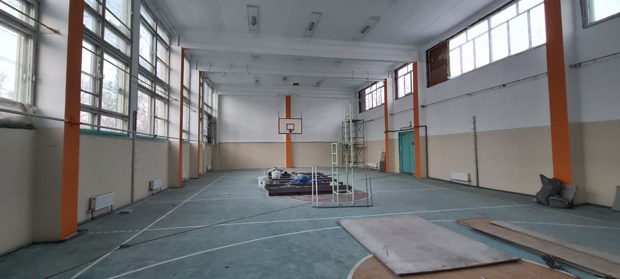 В здании лицея продолжаются штукатурно-малярные работы. На четвертом этаже завершили покраску кабинетов, аналогичная работа сейчас ведется на втором и третьем этажах. Идет покраска спортзала. Во всем здании лицея полностью смонтировали систему отопления. В туалетных комнатах укладывают плитку.