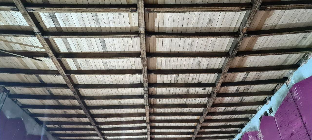 подрядчик провел ремонт кровли: заменили стропильную систему, усилил фермы на кровле, с заменой несущих балок