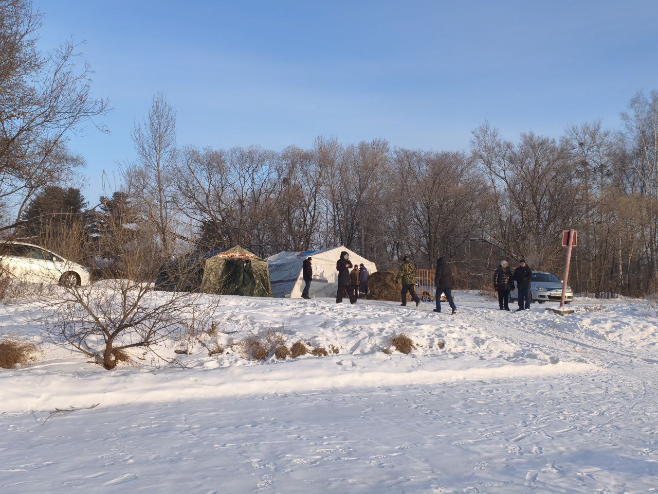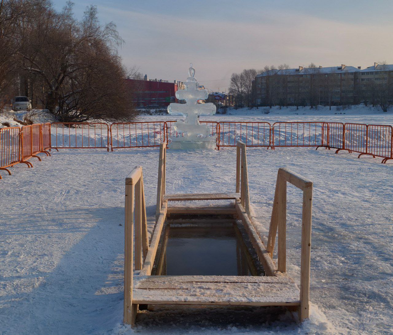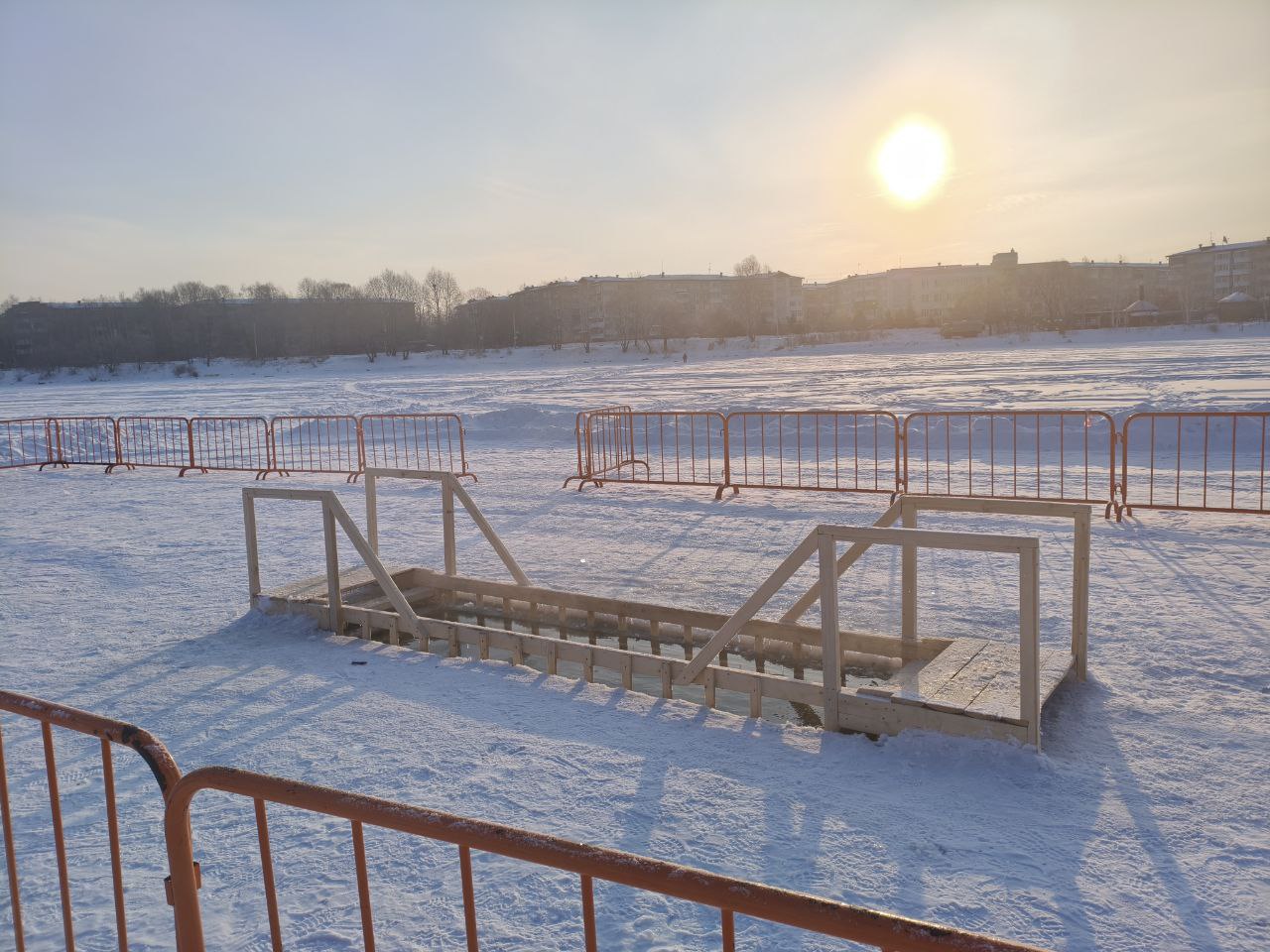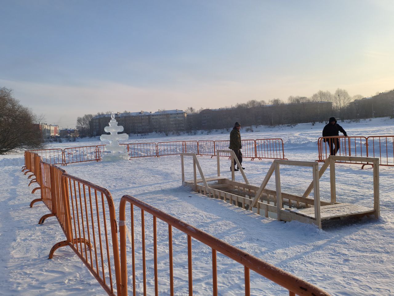 Крещенский городок и прорубь оборудовали на территории Невского залива. Также здесь установили палатки, где биробиджанцы смогут переодеться и согреться. Будет работать полевая кухня.