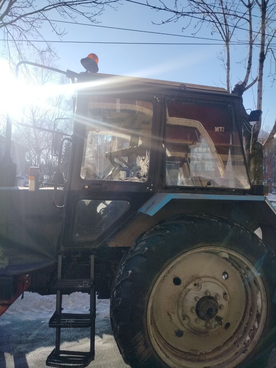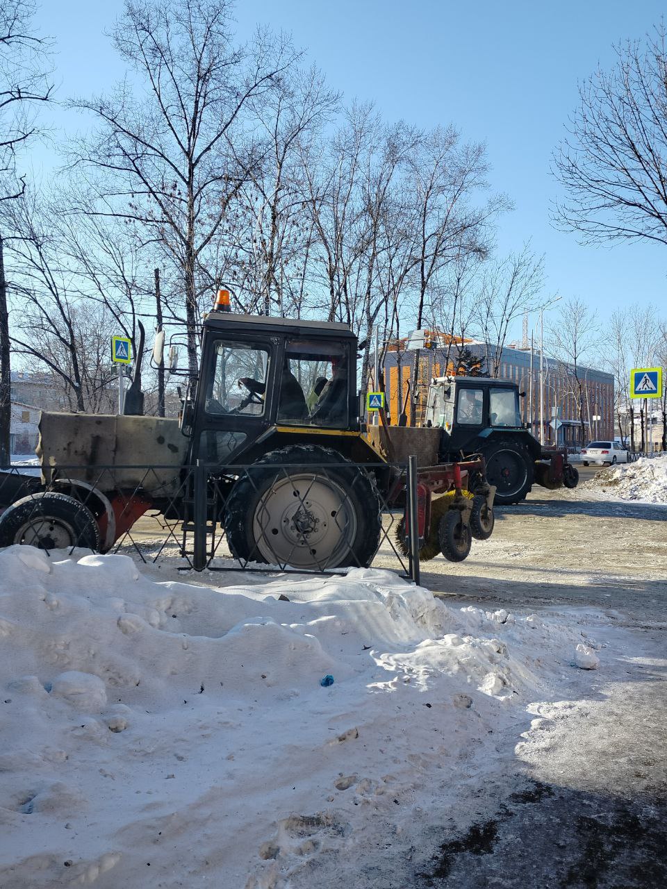 Грейдер и МТЗ работают в мкр. Биробиджан-2. Техника также проедет по ул. Биршоссе, и затем работа продолжится в пос. им. Лукашова.