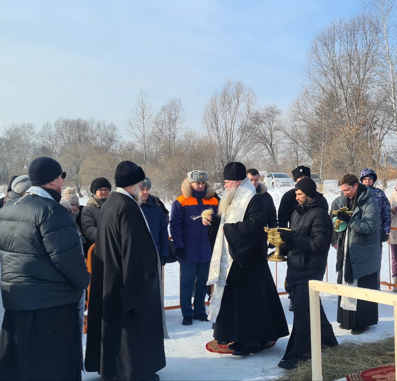 На заливе оборудовали купель, установили палатки, где биробиджанцы могут переодеться и согреться. Здесь же работает полевая кухня. Ожидается, что Крещенский городок посетят многие биробиджанцы.