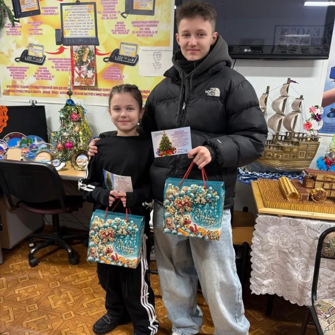 В рамках акции «Новогодний подарок» Региональные отделения Союза женщин России (https://clck.ru/3RMXmz), Российского Красного креста (https://clck.ru/3RMXnu) и Фонд гражданских инициатив в ЕАО (https://clck.ru/3RMXoP) навестили ребят из малообеспеченных и многодетных семей, а также детей с инвалидностью и проходящих лечение в стационаре.