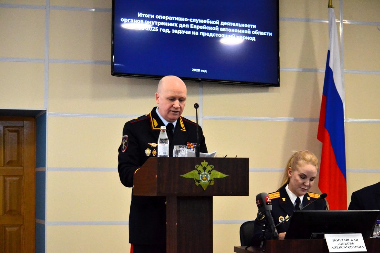 В работе коллегии также участвовали руководители органов исполнительной власти ЕАО и иных государственных органов, правоохранительных и силовых ведомств, подразделений полиции области. Открыл заседание начальник УМВД России по ЕАО Александр Добровольский. Он представил доклад о результатах оперативно-служебной деятельности в 2025 году, обозначил основные задачи на 2026 год и вручил сотрудникам ведомственные награды.