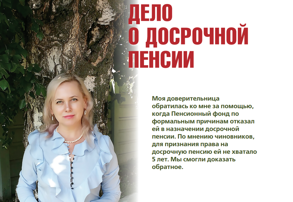 Согласно правовым позициям Конституционного суда РФ, право на досрочную пенсию принадлежит тем, чья деятельность подвергает организм неблагоприятным условиям, что в случае с Натальей было бесспорным фактом.