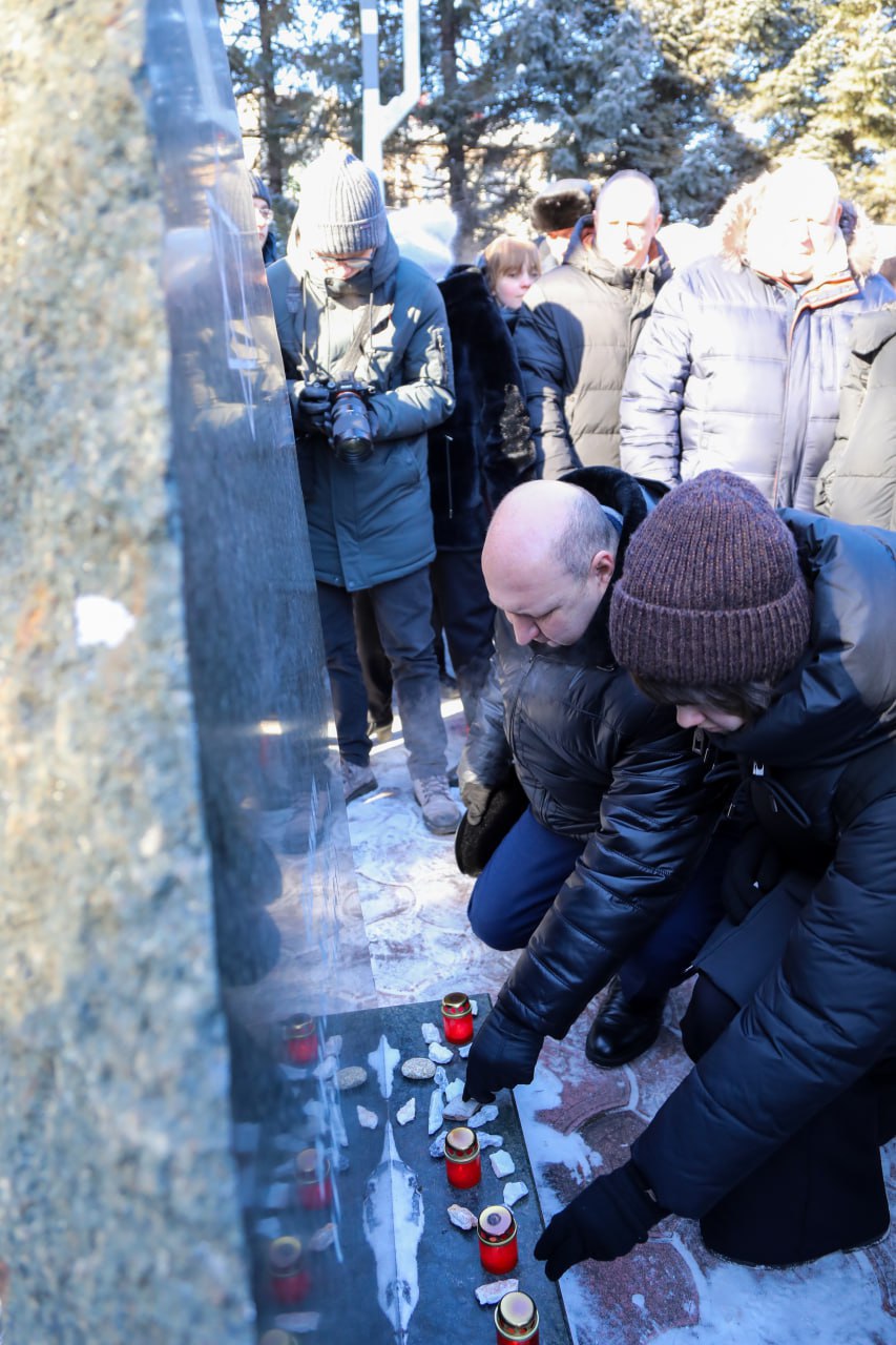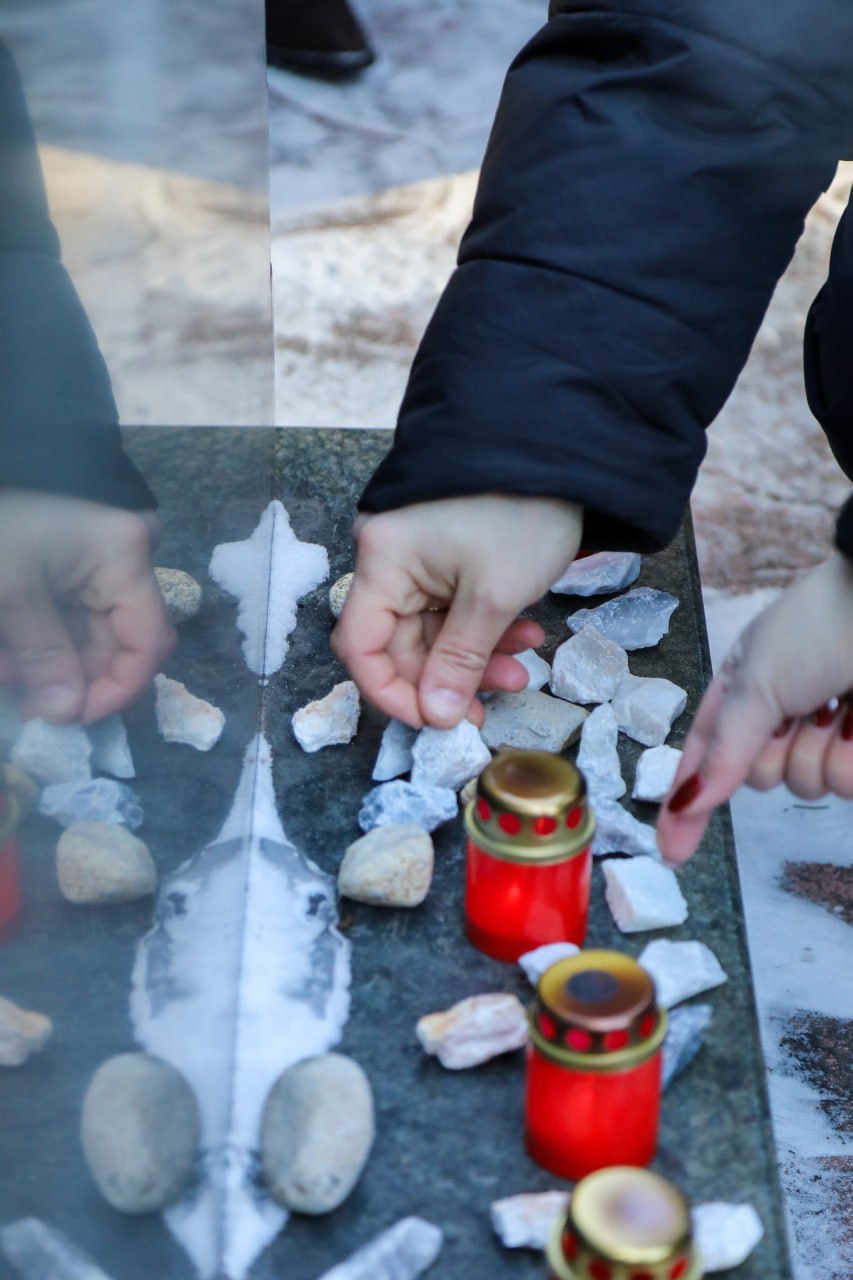 Завершился митинг возложением цветов и камней к мемориалу, зажжением поминальных свечей и минутой молчания.