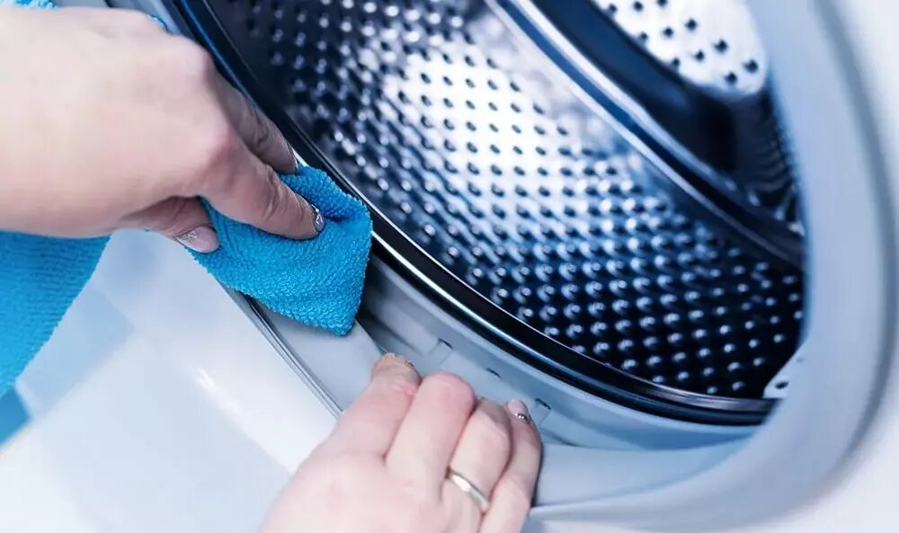 Уберите крупный мусор, затем обработайте складки мягким средством и щеткой, тщательно промыв все изгибы. Важно удалить остатки и просушить резину после обработки. При необходимости запустите цикл очистки барабана, если ваша модель поддерживает такую опцию.
