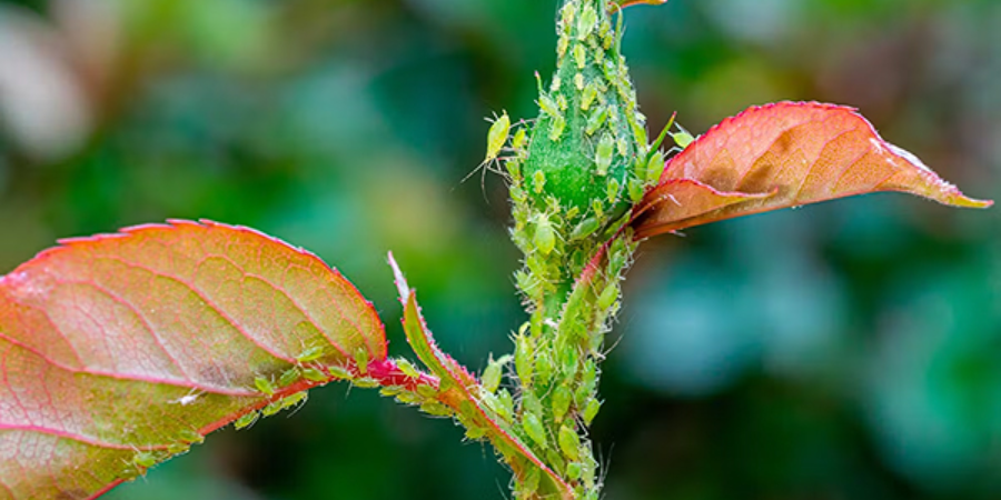 - Мелкие зелёные, чёрные или коричневые насекомые на молодых побегах и бутонах.