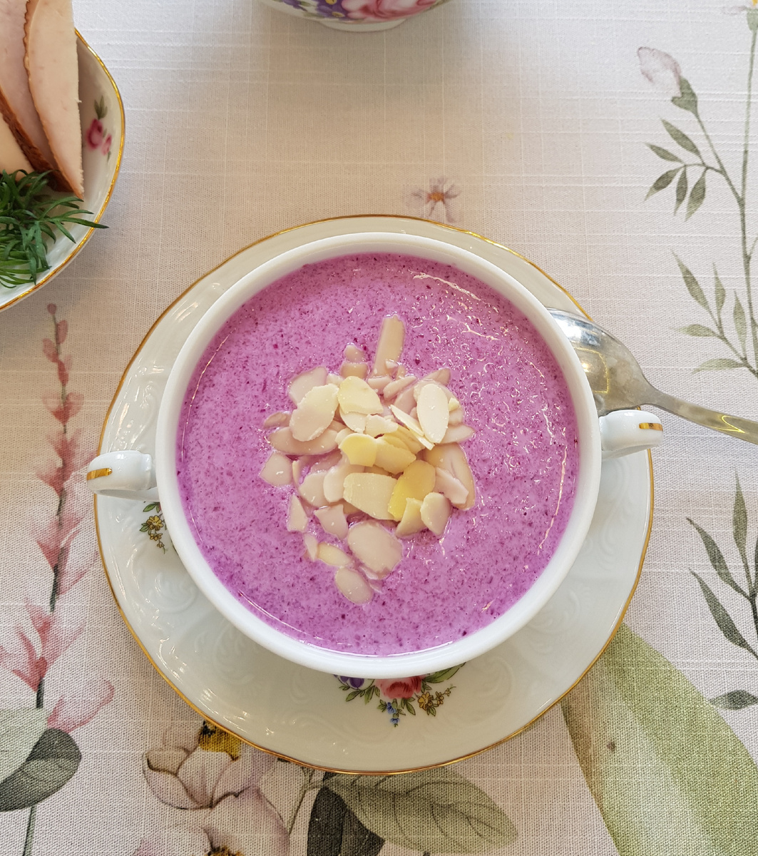 Разлить гаспачо по порционным чашам, посыпать ароматными лепестками миндаля. В качестве гарнира идеально подойдет копченая утиная грудка и свежий укроп. Такой легкий и витаминный суп станет настоящим украшением летнего стола!
