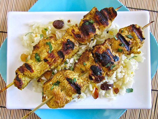 Летние куриные шашлычки в медово-сметанном маринаде с рисовым салатом