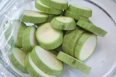 Чтобы добиться желаемого результата, необходимо приготовить специальный солевой раствор. Для этого в 1 литре воды смешивают по чайной ложке соли и сахара. Через 10 минут в этом растворе кабачки, нарезанные толстыми кружочками, уже готовы к дальнейшему процессу.