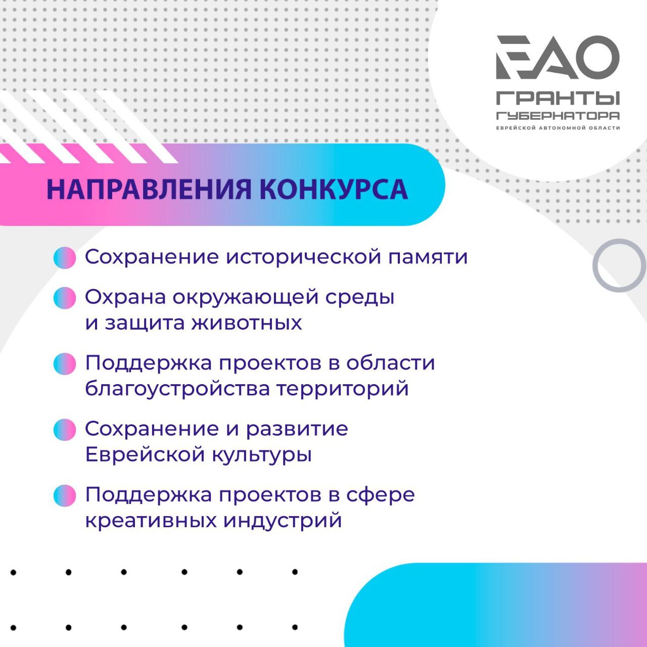 Как сообщила губернатор ЕАО Мария Костюк, в приоритете проекты, направленные на сохранение и развитие еврейской культуры, благоустройство территорий, защиту экологии, помощь семьям, сохранение исторической памяти и другие важные задачи – всего 10 направлений.