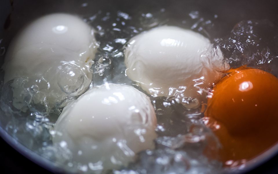 Смешайте воду с содой, опустите яйца в получившийся раствор на 20 минут. После этого их следует промыть под проточной водой и можно приступать к приготовлению.