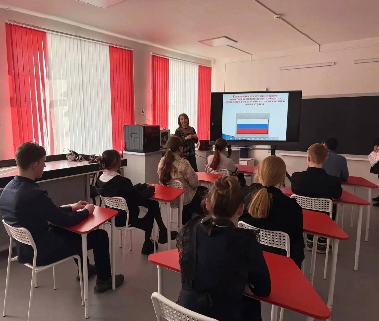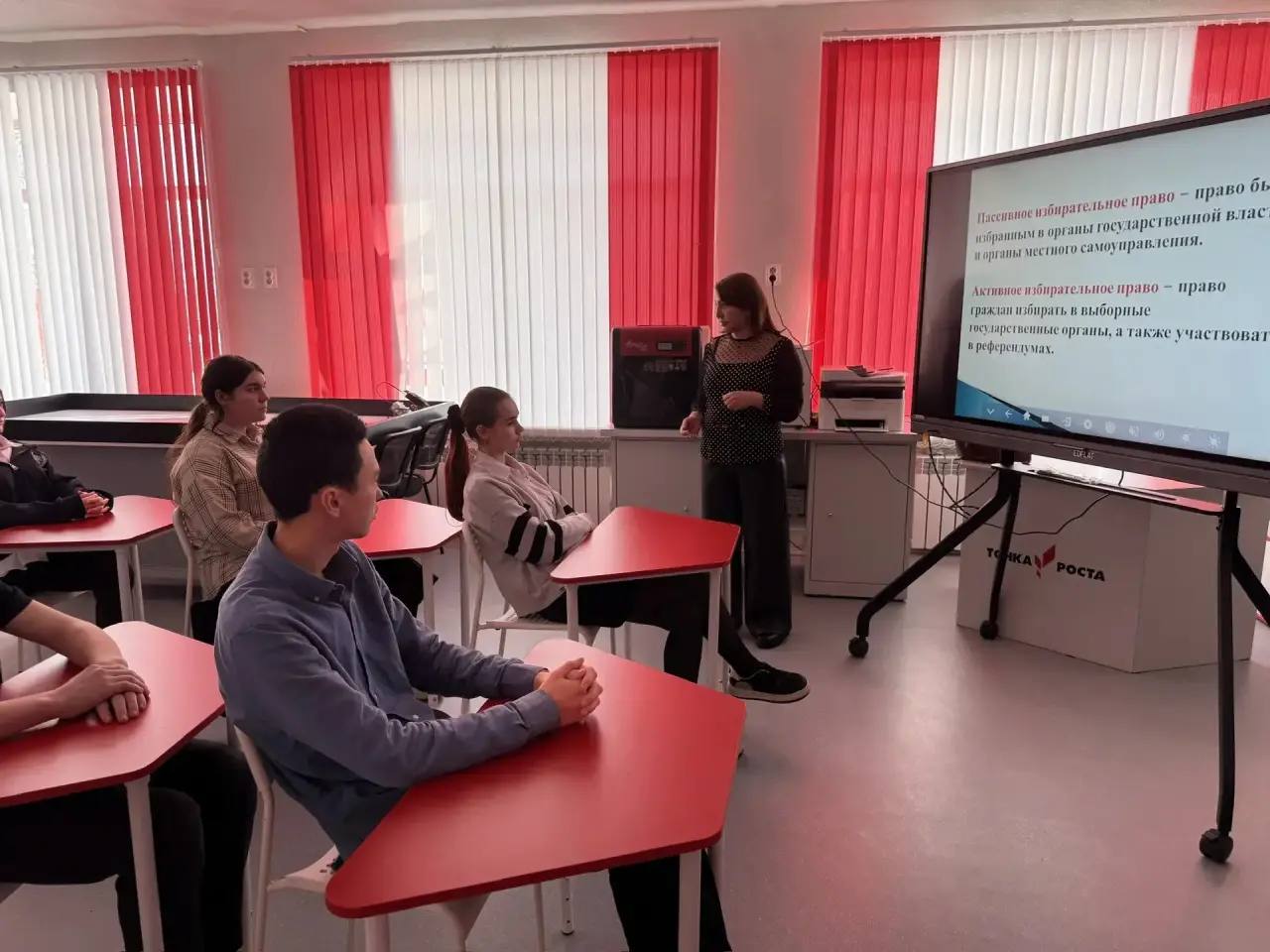 Для десятиклассников же состоялся полноценный урок-диалог о российской избирательной системе. В формате беседы с презентацией школьники обсудили: