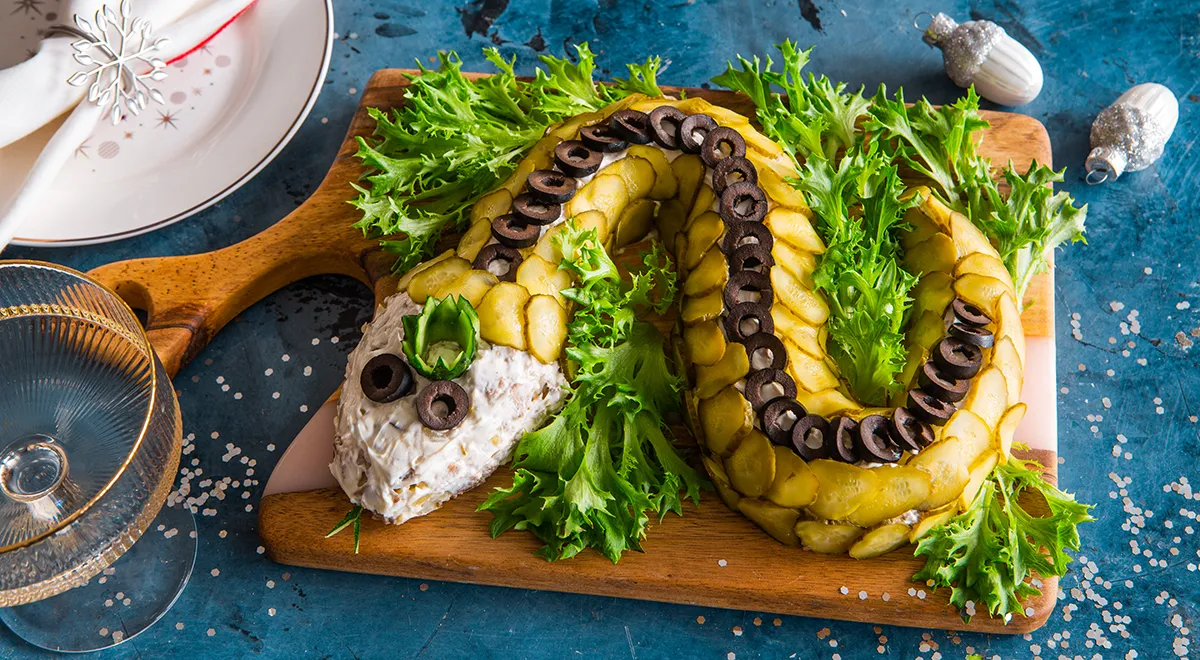 Салат «Змейка» не только красиво будет смотреться на столе, но и станет символом удачи и счастья в наступающем году. Создайте настоящую новогоднюю магию, удивив своих близких этой яркой и вкусной закуской!