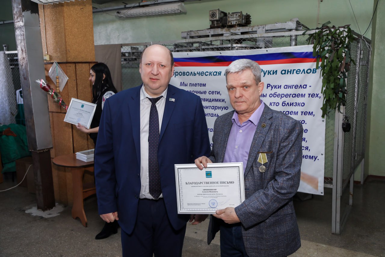 Андрей Голубь поблагодарил волонтеров за их бескорыстный труд, время и силы, которые они отдают, приближая нашу Победу, и вручил Благодарственные письма ЗС большой группе волонтеров. Отдельную признательность председатель выразил руководителю группы Ирине Парыгиной за то, что она смогла объединить вокруг себя так много неравнодушных людей и грамотно организовать их работу, и пожелал всем здоровья, благополучия, счастья, мира и добра.