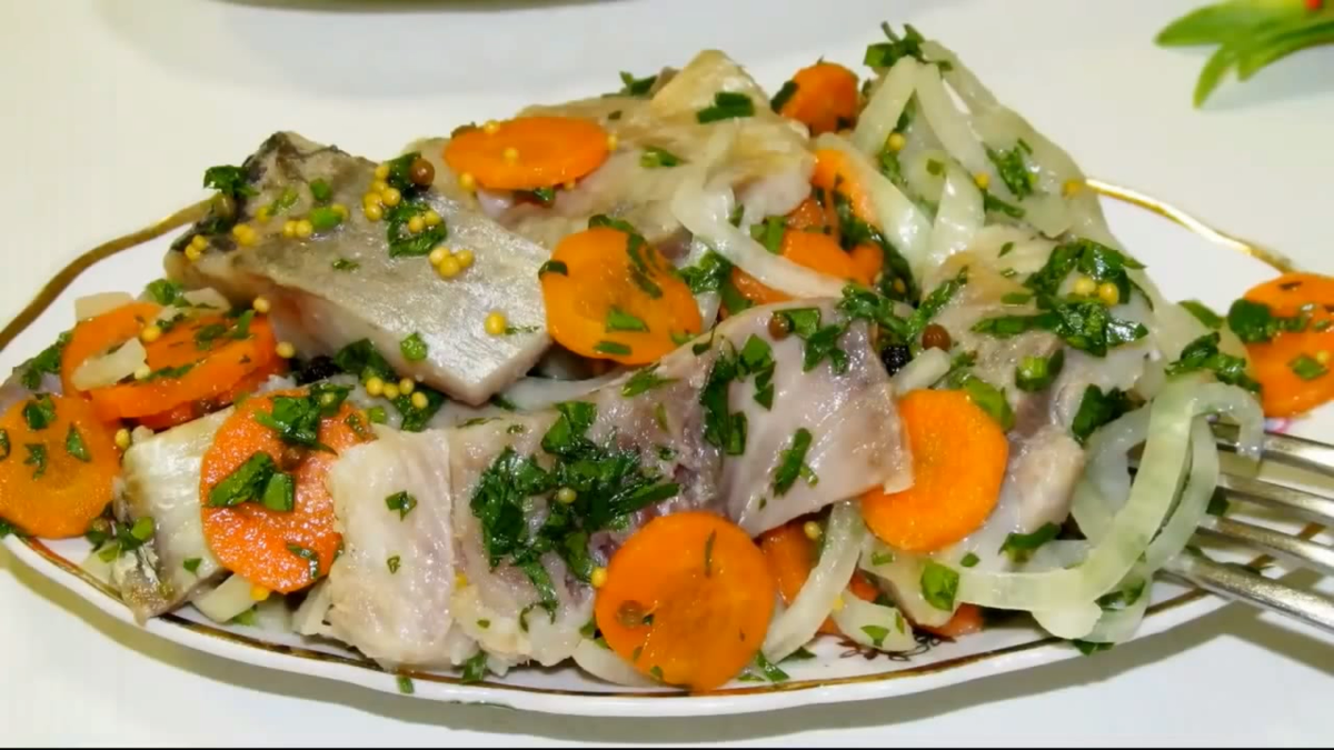 Эта закуска станет настоящей звездой на вашем праздничном столе — маринованная селёдка с зеленью и овощами украсит любое мероприятие.