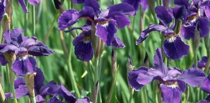 - Сибирский ирис: это выносливое растение прекрасно чувствует себя как на солнце, так и в полутени. Оно представлено в различных оттенках — от фиолетового до золотого. Сибирские ирисы нетребовательны к почве, но всех радует их великолепие вблизи водоемов.