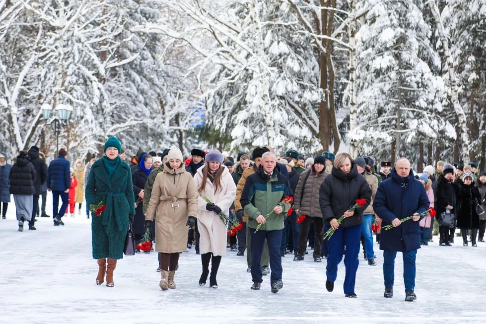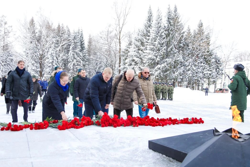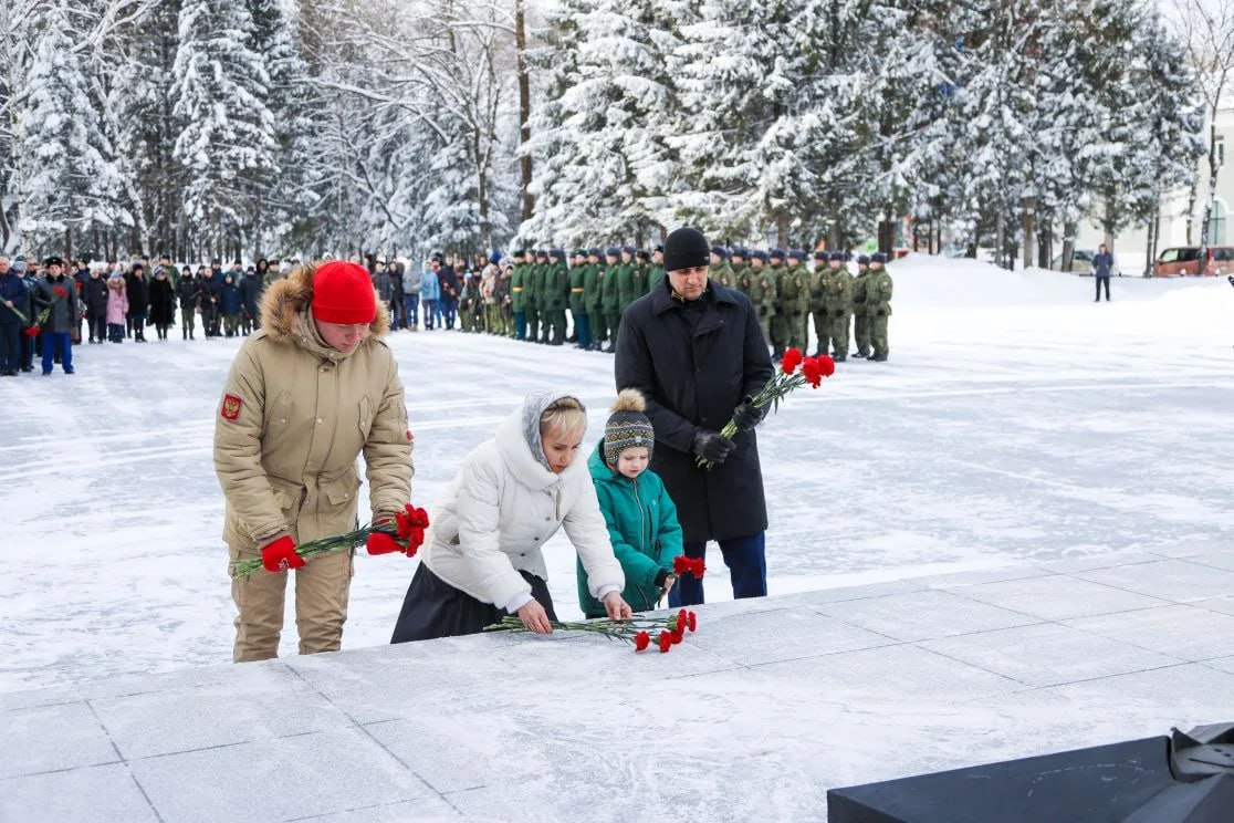 Сегодня, в День защитника Отечества, в сквере Победы Биробиджана прошла церемония возложения цветов. В знак памяти, уважения и безмерной благодарности нашим воинам первыми цветы к Огню Славы возложили губернатор области Мария Костюк, Герой России Олег Джафаров и участник движения Юнармии Владислав Кудинов.