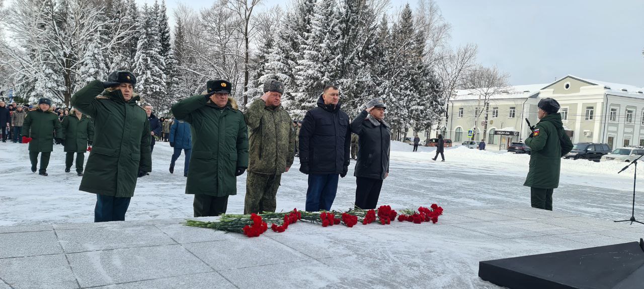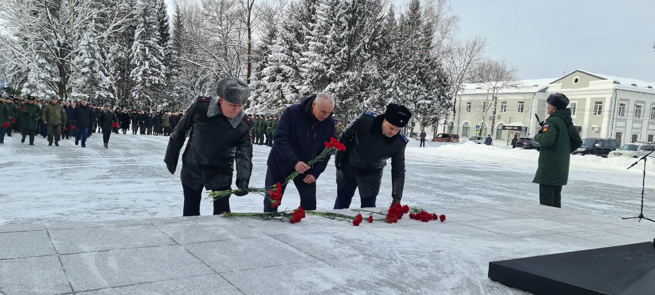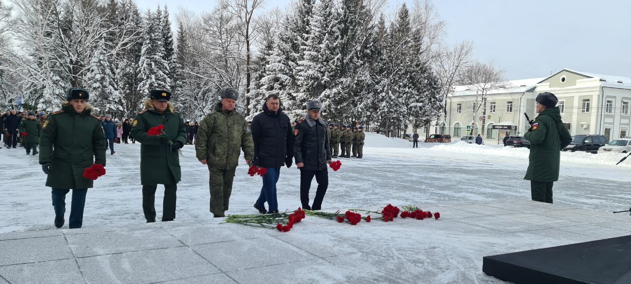 Участники церемонии почтили память погибших защитников Отечества минутой молчания и возложили цветы к мемориалу.