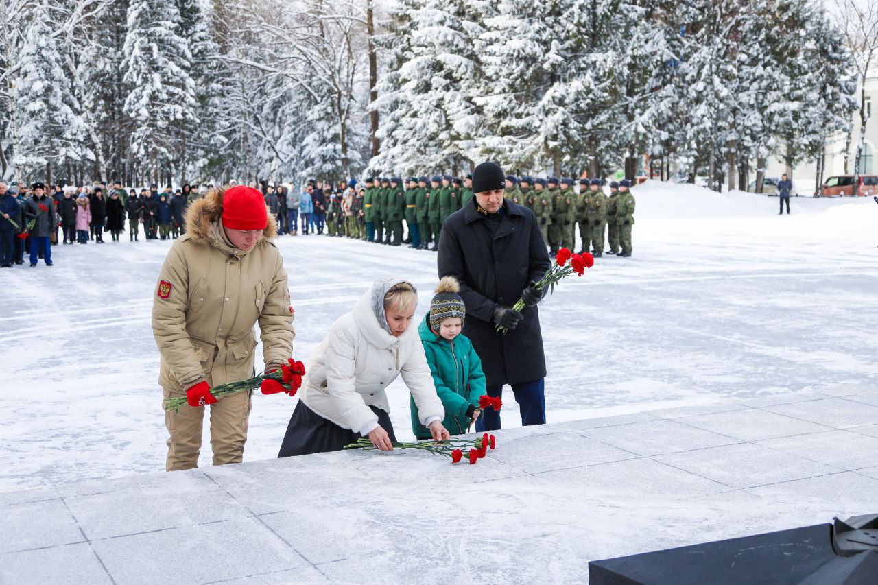 Сегодня, 23 февраля, в Биробиджане состоялась церемония, приуроченная к Дню защитника Отечества. В знак безмерной благодарности воинам всех поколений в сквере Победы к Огню Славы были возложены цветы.