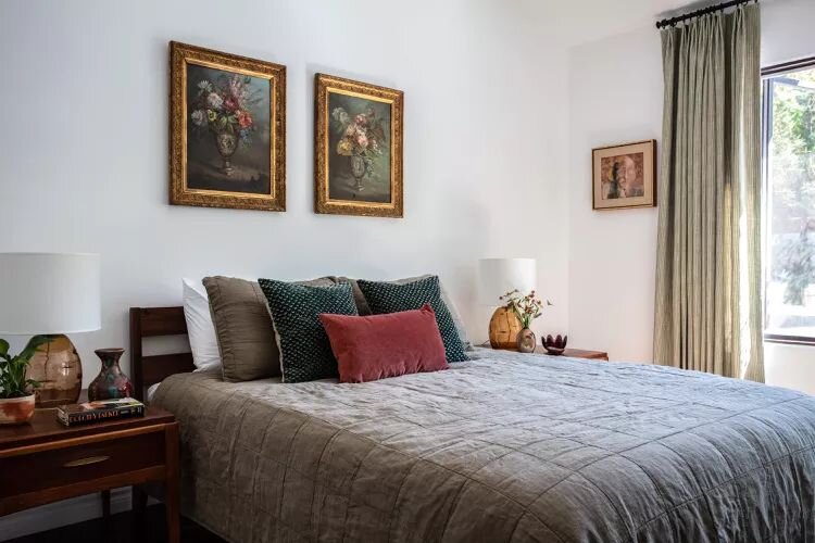 Занавеси тоже играют ключевую роль. Вместо жалюзи стоит рассмотреть более уютные решения, которые придадут спальне изысканности — выберите ткань, которая будет гармонировать с цветами в комнате.