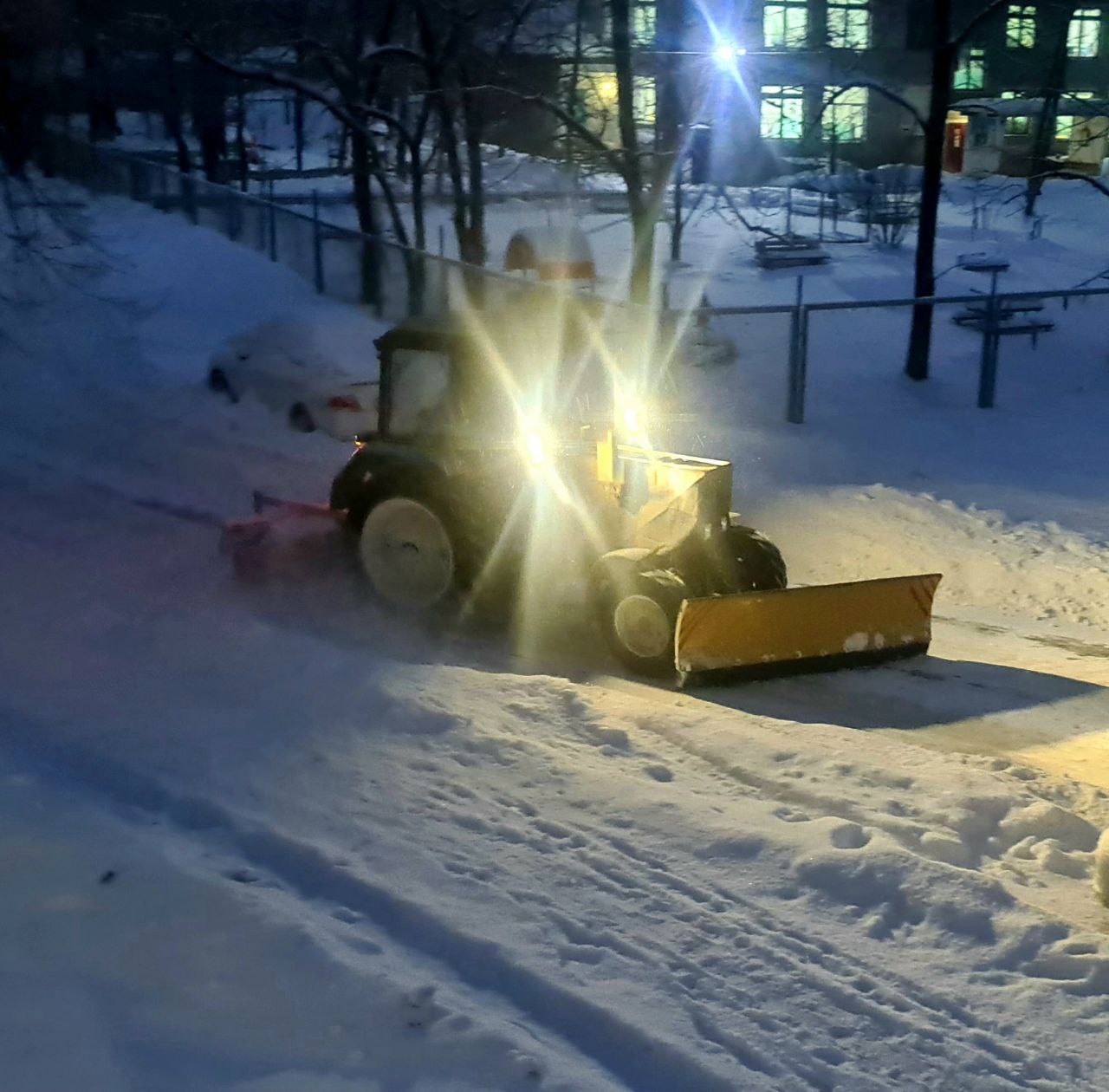 Камаз с отвалом работает за железнодорожным переездом, 1 грейдер производит очистку на ул. Биршоссе. 1 грейдер и 1 МТЗ устраняют накат на центральных улицах Шолом-Алейхема и Пионерской вдоль прибордюрной зоны, уделяя особое внимание остановочным карманам.