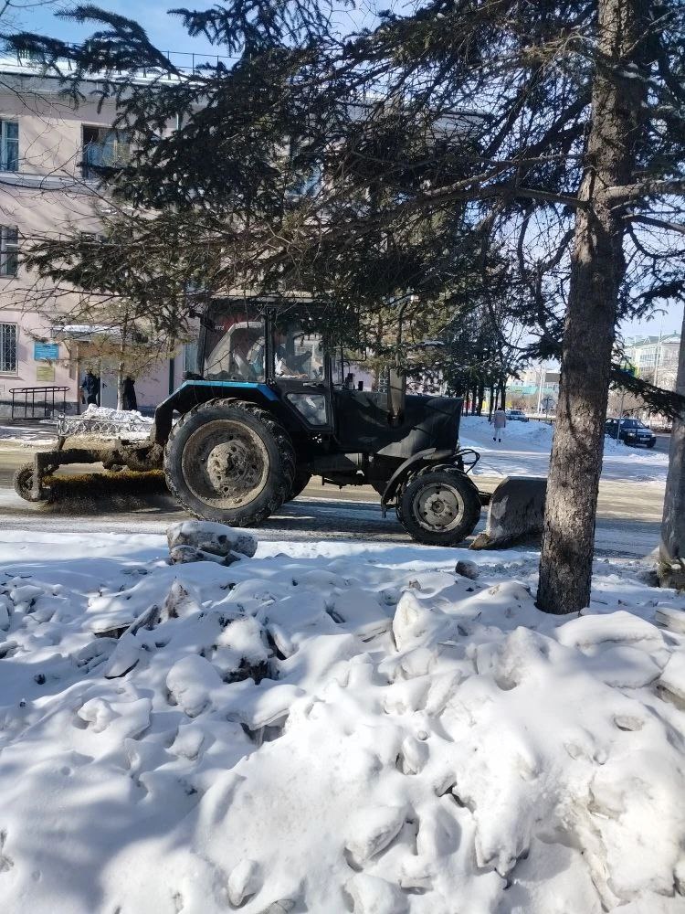 Завтра после обеда с помощью нескольких МАЗов и погрузчиков будет осуществляться вывоз снежных масс на очищенных участках.