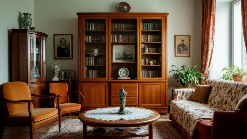 Советские квартиры не были уставлены декоративными безделушками. Вазы заполняли исключительно цветами, а полки украшали книги и качественные репродукции. Даже кружевные салфетки имели свою практическую функцию, защищая мебель от грязи и царапин.