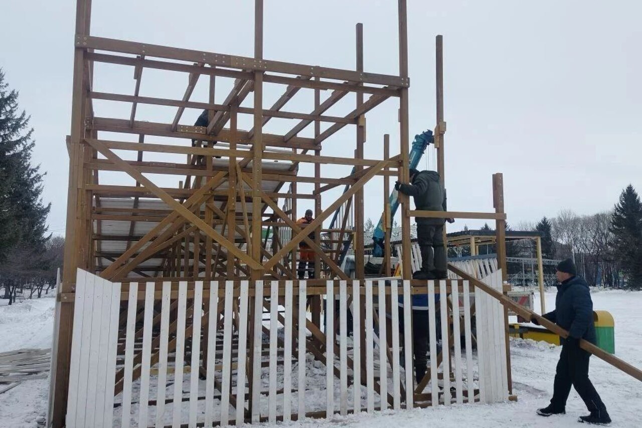 Новогодние и масленичные праздники позади, и пришло время прощаться с зимними конструкциями. На площади имени Ленина начался плановый демонтаж новогодних горок.