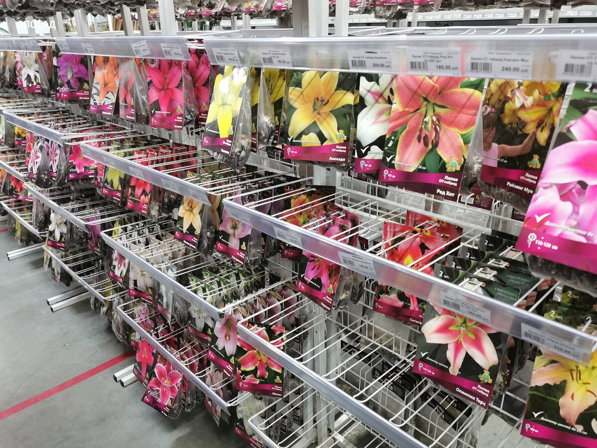 Первый мой визит был посвящен розам, которых стоит хватать сразу, иначе они могут отрасти в магазине. Гладиолусы я купила, когда стеллажи только начали заполнять. Все растения, которые покупаются, за редким исключением, приобретаются в магазине «Поиск» — это ближний питомник с неплохим выбором.