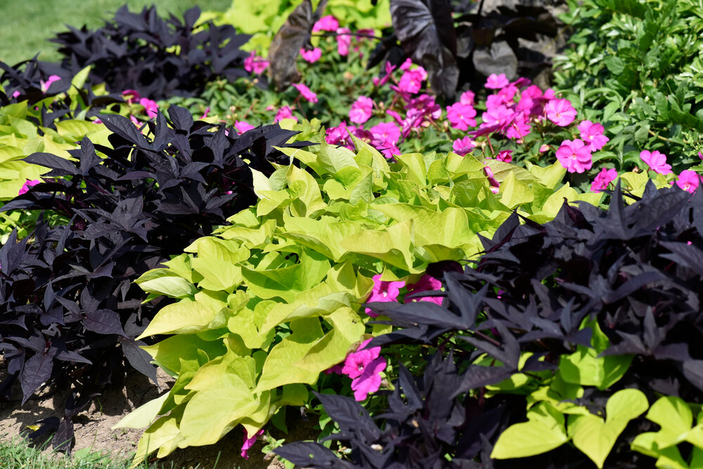 Ипомея батат отлично смотрится в сочетании с другими растениями. Она может выступать как основным акцентом в цветочной композиции или создавать красивый зелёный ковер на клумбе. Подходит для использования в вертикальных садах или на подпорных стенках. Это универсальное растение способно адаптироваться к различным условиям, что делает его идеальным для различных уголков сада, будь то юг или северные регионы, пишет 7 дач.