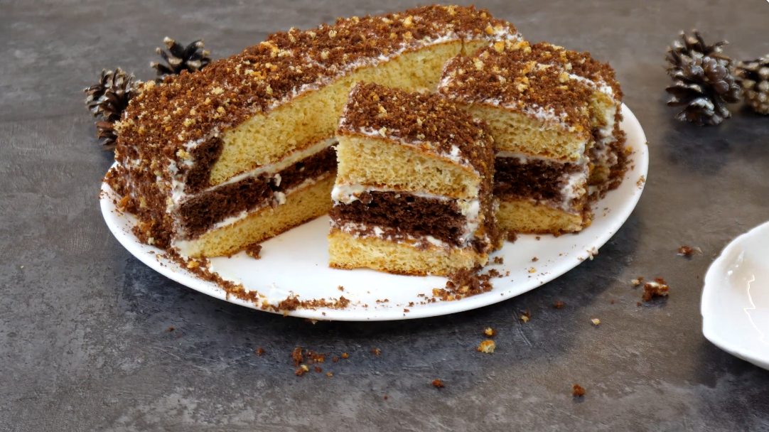 Иногда ощущение, что идеальный десерт относится не к редкостью, а к скорости. Этот торт рождается именно из такой бытовой нужды — простой, доступный и готовый к подаче за считанные минуты. Вкус остаётся домашним, а структура surprise: шоколадное и светлое чередуются слоями, создавая эффект нарядности без строгой декорации.
