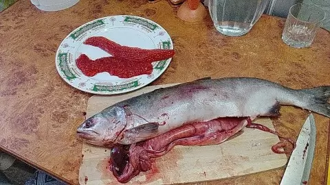 Первым делом нужно аккуратно извлечь икру из рыбы. Промыть её под проточной водой, после чего осторожно развернуть. Для этого с одной стороны пленки необходимо слегка её порвать.