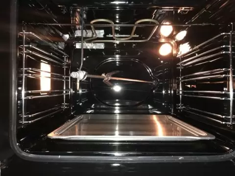 - Пар с лимоном: противень с горячей водой и дольками лимона ставят под решетку, духовку прогревают до 100–120°C на 40–60 минут. Лимонная кислота и пар размягчают нагар, после остывания смыть губкой.