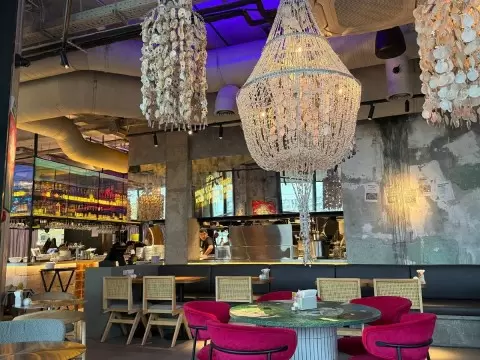 Бронировать столик удобно через официальный сайт или приложение. Подтверждение брони пришло в день до посещения, что добавляет организованности в процесс. Интерьер ресторана характеризуется бетонными стенами, сглаженными мозаичными панно и продуманной атмосферой. Просторные залы, декорированные ракушками и жемчугом, придают заведению уникальный шарм, выделяя его среди аналогичных мест.