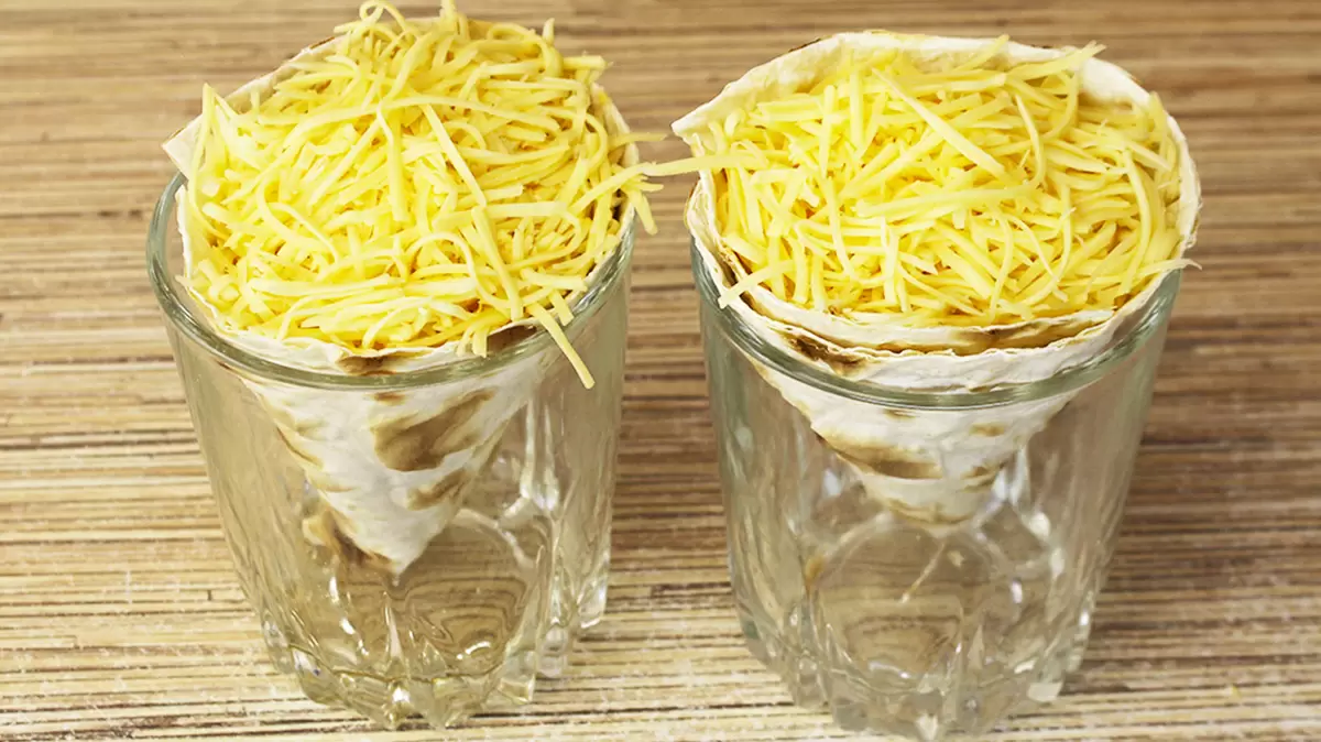 Теперь осталось наполнить готовые рожки начинкой и сверху накрыть натертым сыром. Чем больше сыра, тем аппетитнее будет закуска! Поместите рожки в микроволновую печь на максимальную мощность на одну минуту. Этого достаточно, чтобы сыр расплавился, а лаваш стал хрустящим.