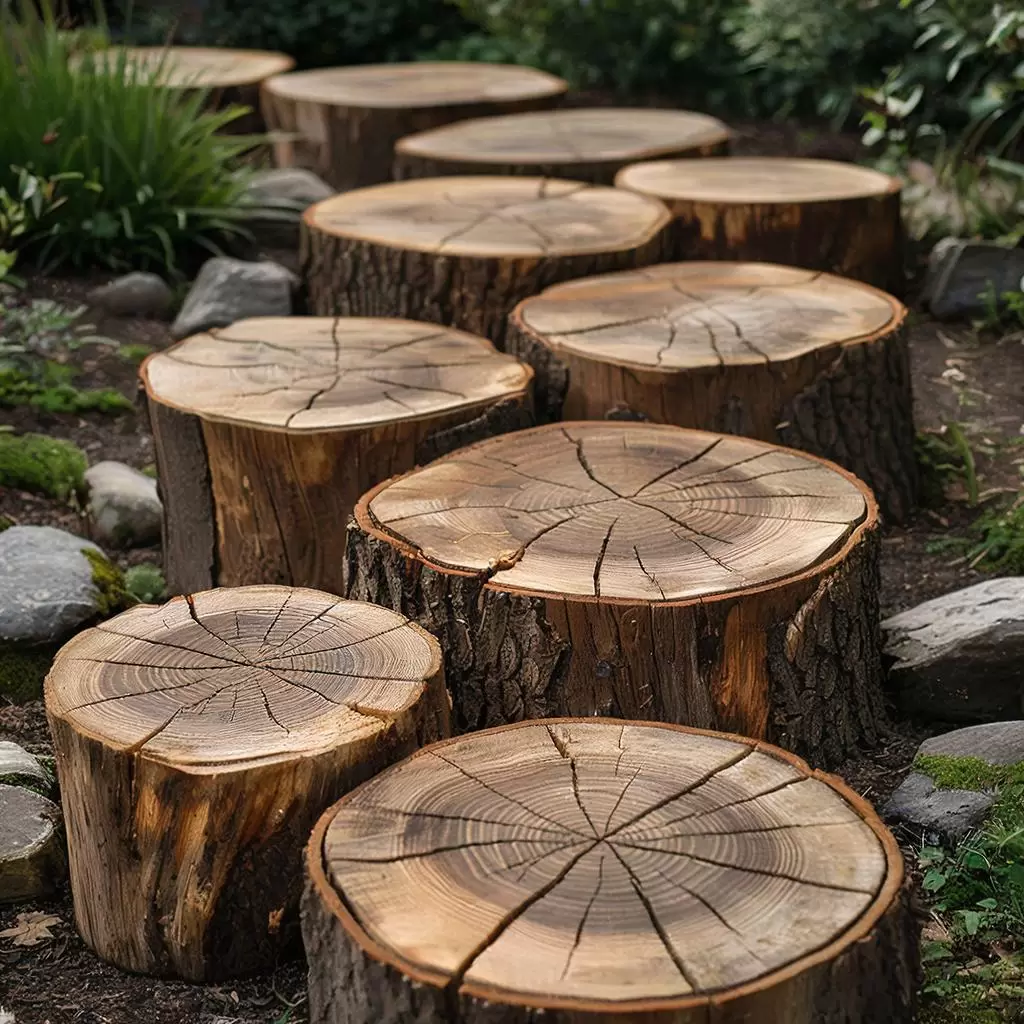 Спилы деревьев — идеальный выбор для ценителей экологического стиля и тех, кто готов вложить время и усилия в создание долговечной конструкции. Основой для работы станут спилы твердых пород дерева, таких как дуб, лиственница или ясень. Сосна и ель проще в приобретении, но быстрее стареют. Оптимальная толщина спилов — 10-15 см, что обеспечит устойчивость и защиту от усадки. Важно предварительно очистить их от коры, чтобы избежать появления насекомых и грибка, что может свести на нет весь труд.