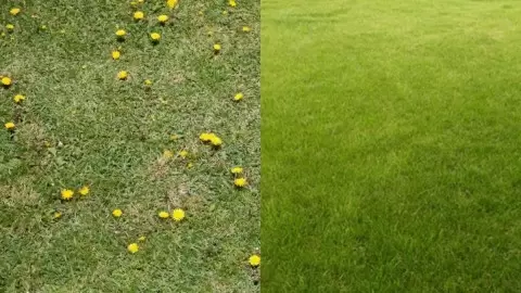 Работу следует начать после стрижки газона — оставьте траву высотой около 5 сантиметров. Это облегчит поиск розеток растений. Разделите участок на квадраты для удобства обработки.