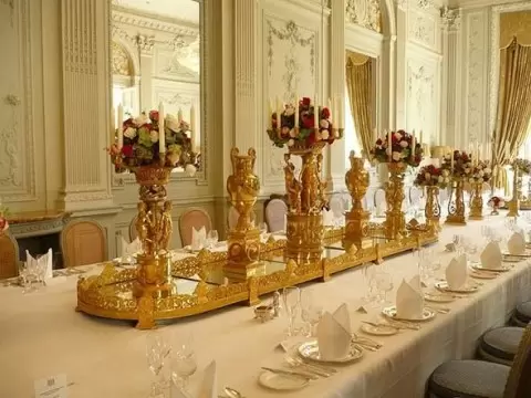 Представьте атмосферу XIX века: вечер, наполненный свечами, придающими мягкий свет залу, где шёлковые гардины едва колышутся от лёгкого ветерка. На столе развернулся настоящий спектакль — сервировка, способная поразить даже самых искушённых эстетов.