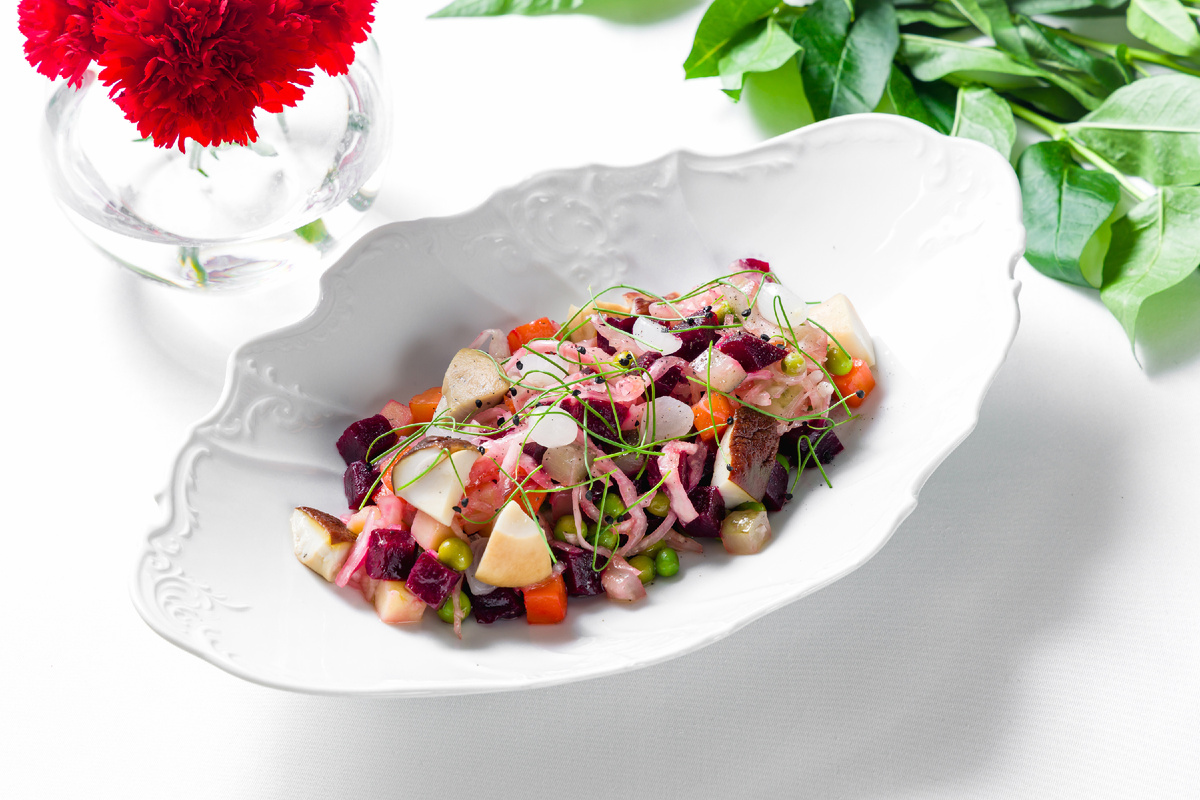 Популярность белых грибов в кухнях России только растет. Эти ароматные и сытные грибы всё чаще выигрывают в холодных и горячих блюдах, соусах, закусках и даже десертах. Особенно популярным стало сочетание белых грибов с классическим винегретом — традиционным русским салатом, который в свое время обрел второе дыхание благодаря современным интерпретациям шеф-поваров.