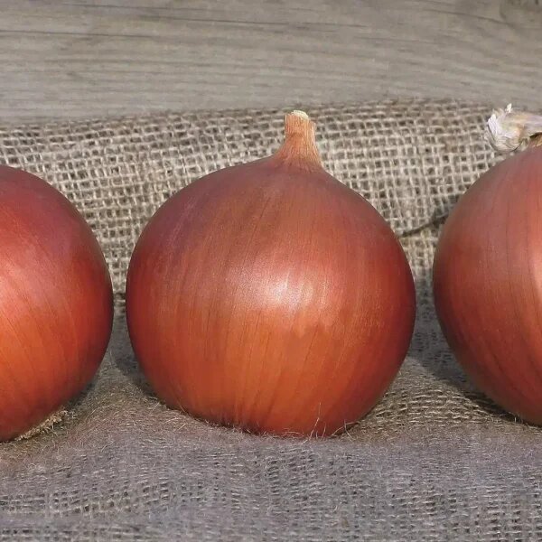 Главной особенностью луковиц является их выровненная округлая форма с массой 120-150 граммов. Темно-коричневая "рубашка" надежно защищает внутренние чешуи от повреждений и минимизирует потерю влаги, что существенно важно для хранения. При этом белоснежные внутренние чешуи с плотной текстурой делают их идеальными для салатов.