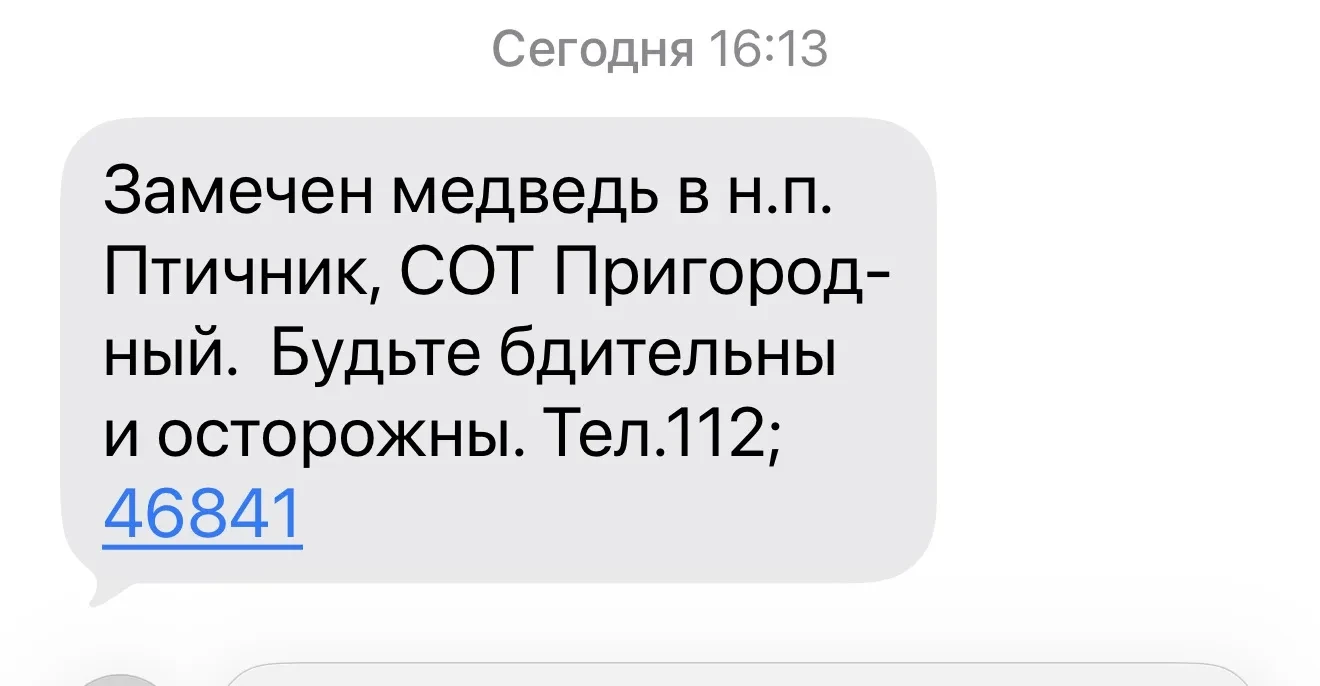 Тревожное сообщение получили только что жители ЕАО. Замечен медведь в с. Птичник, СОТ Пригородный.