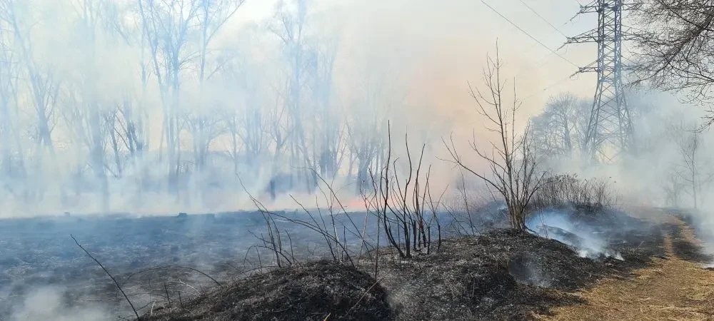 Расстояние от жилых построек до сухой травы должно составлять не менее 10 метров.