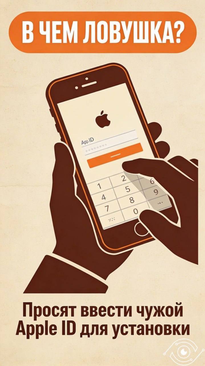 2Вам объясняют, что приложения нет в AppStore, поэтому для скачивания мошенники просят Вас ввести данные чужого Apple ID для установки.