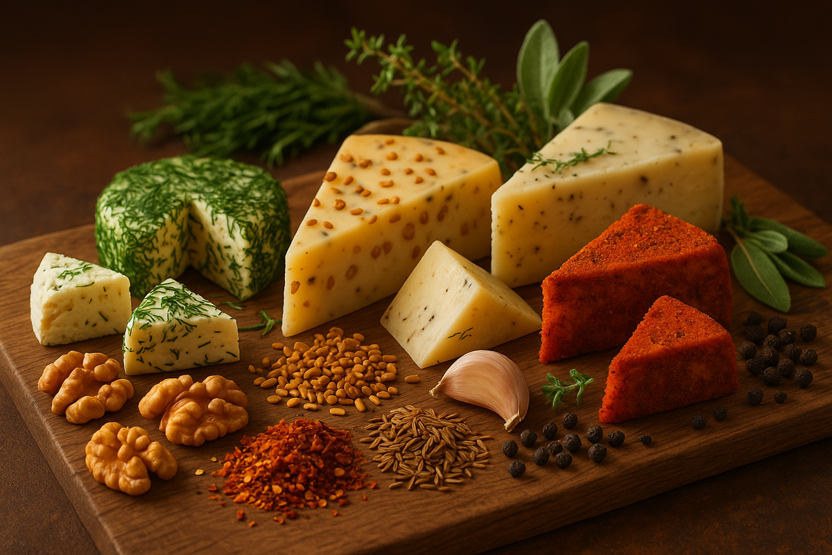 Добавление орехов к сырам создает интересные текстурные контрасты и придает готовому продукту особую терпкость. Классика — это грецкие орехи, которые делают сыр идеальным компаньоном для вина и фруктов. Интересно, что орехи не только усиливают вкус, но и обогащают сыр ценными питательными веществами, что делает даже небольшой кусочек весьма сытным.